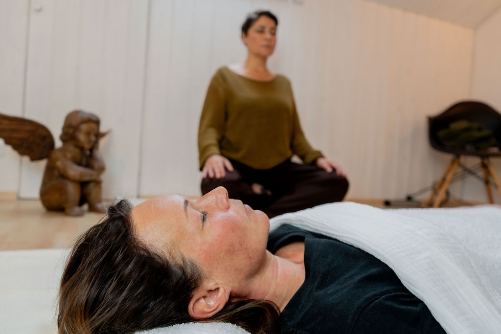 Dadurch verschiebt sich die Gehirnaktivität in tiefere Frequenzen (Theta-Wellen). ein Zustand, in dem das Unterbewusstsein zugänglich wird und der Körper beginnt, Spannungen zu regulieren.
